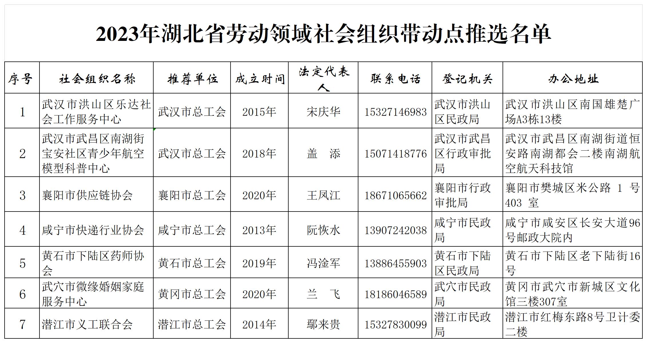关于2023年湖北省劳动领域社会组织带动点拟定名单的公示