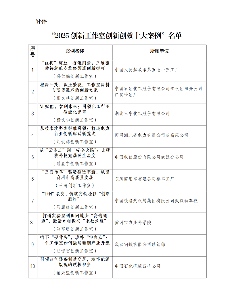 ?“2025创新工作室创新创效十大案例”评审结果公示