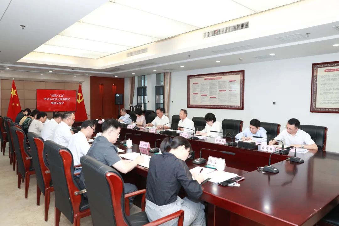 在省法院,刘雪荣与省法院院长游劝荣就纵深推进“法院+工会”劳动争议诉调工作,不断提升劳动争议调解的社会公信力和职工认可度深入座谈交流。