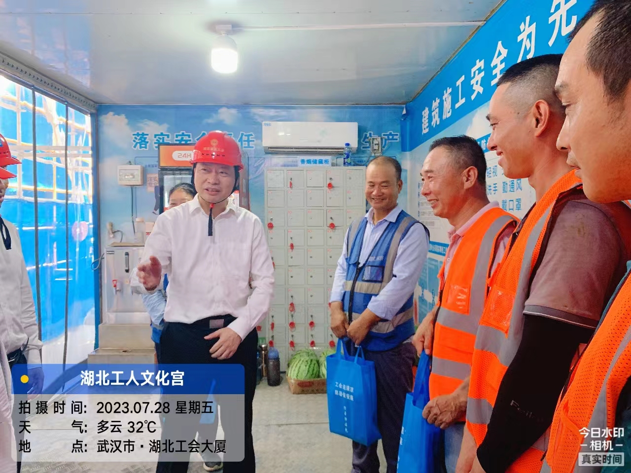 7月28日,湖北省总工会党组书记、常务副主席陈惠霞一行到湖北工人文化宫(职工之家)项目开展“送清凉”活动,看望慰问坚守在一线的建设者。
