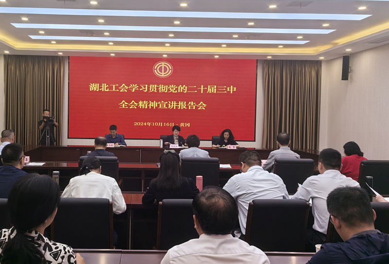 随后,胡东红在黄冈市总宣讲党的二十届三中全会精神,从全会的重大意义、重要讲话精神、重大举措以及省委、全总、省总贯彻落实部署要求等多个方面宣讲和阐释。要求工会组织要聚焦职工群众最关心、最直接、最现实利益问题,把惠民生的事办实、暖民心的事办细、顺民意的事办好,始终扛牢维护职工合法权益,竭诚服务职工的职责使命,汇聚起推动改革的磅礴力量。
