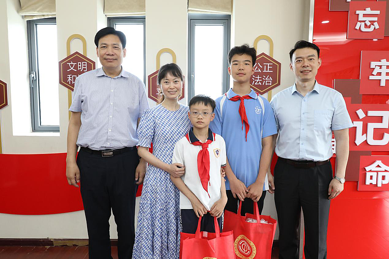 熊晓泉为孩子们送上《习近平讲故事(少年版)》《中华人民共和国未成年人保护法》单行本以及学习用品。他鼓励孩子们要珍惜时光,努力学习,培养良好的品德和兴趣爱好,积极面对生活中的挑战,成长为有担当、有作为的新时代好少年。
