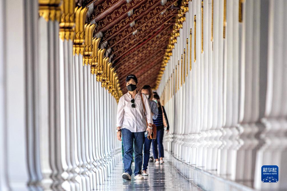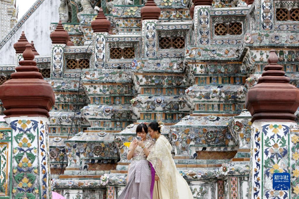 这是6月16日,游客在泰国曼谷郑王庙景区游览。新华社记者 王腾 摄