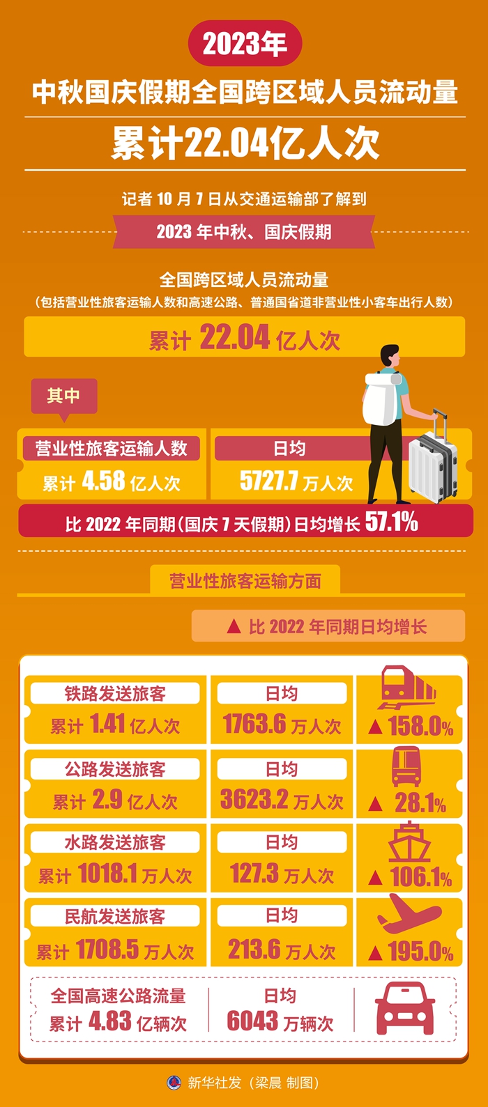 2023年中秋国庆假期全国跨区域人员流动量累计22.04亿人次